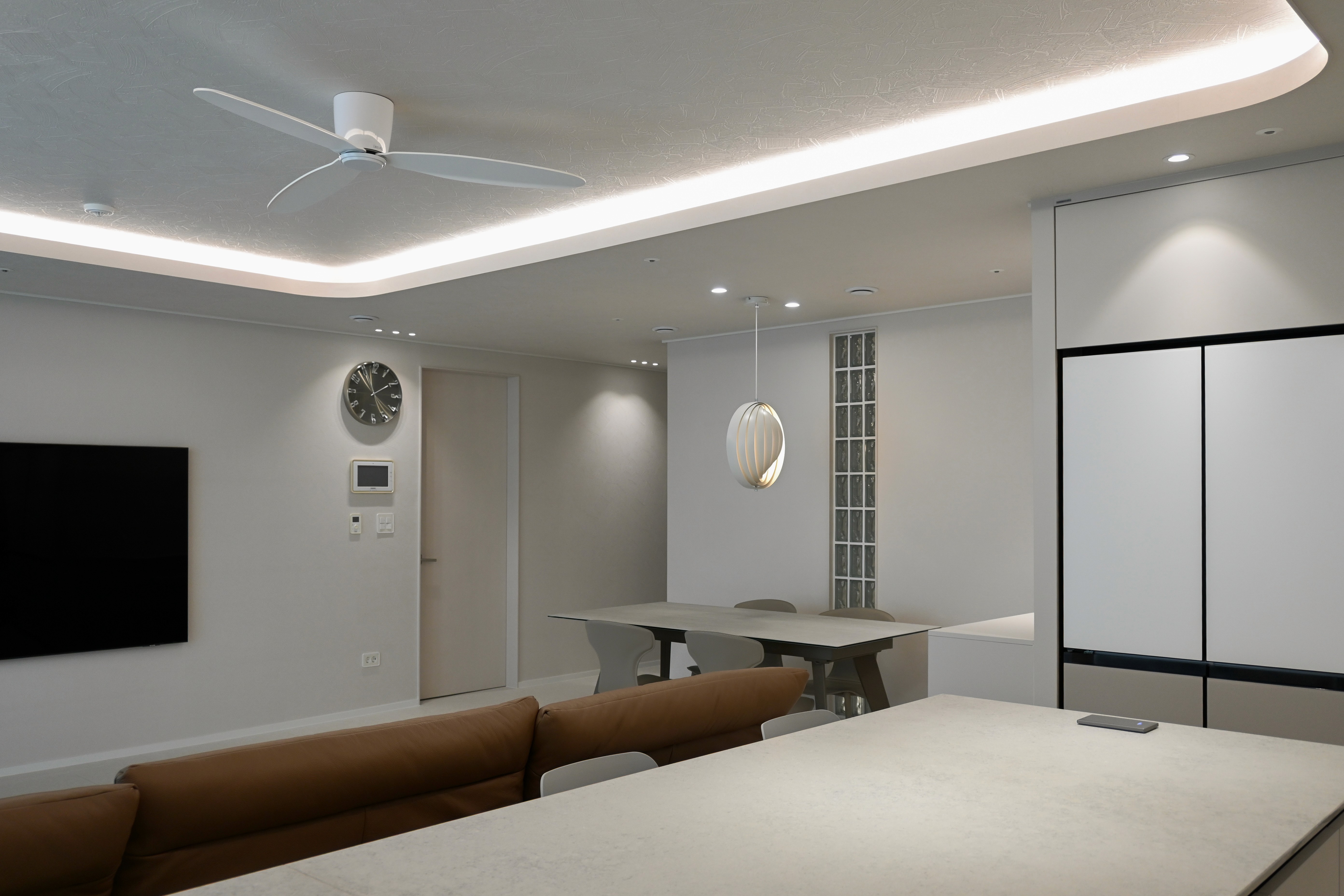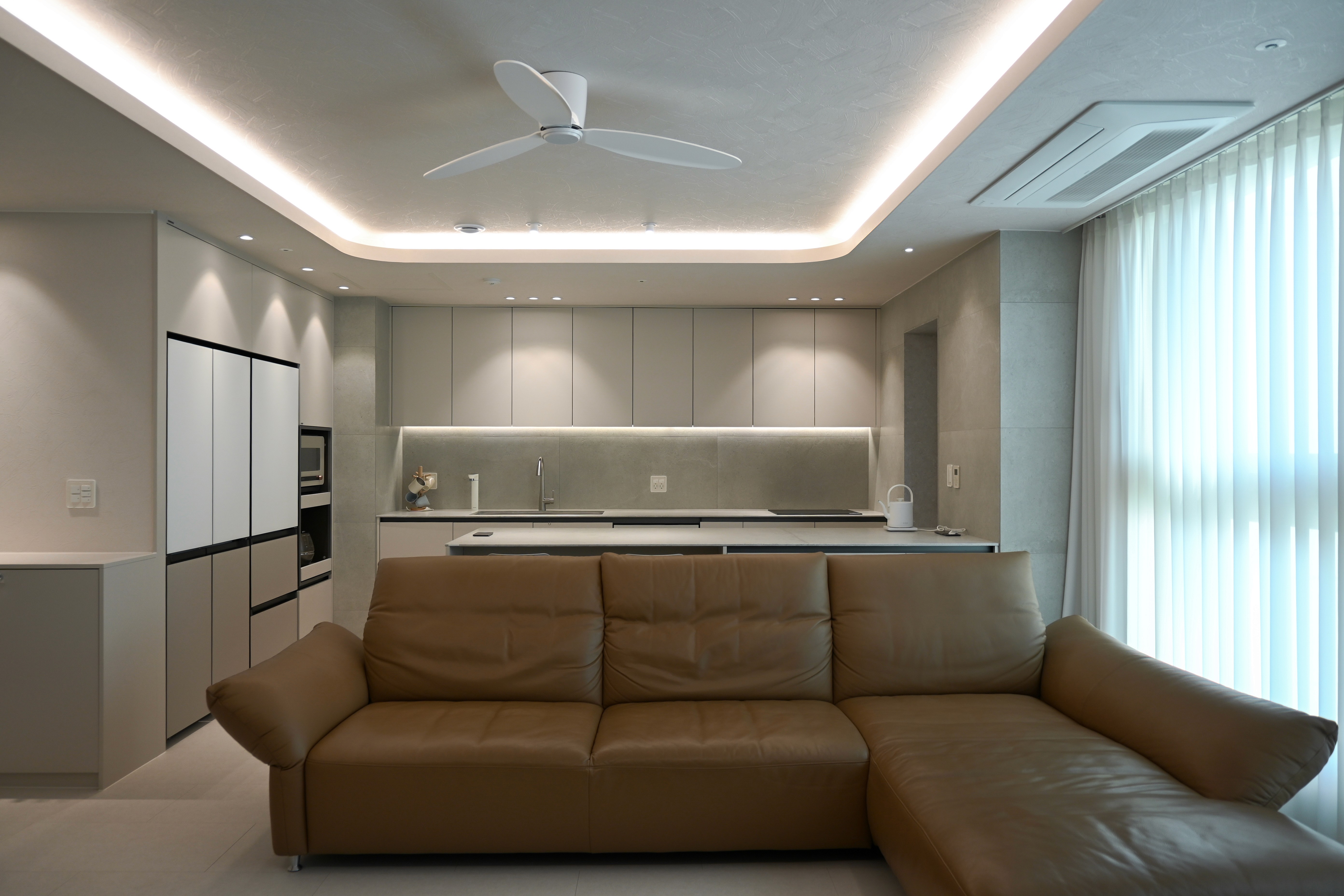 은은한 베이지 톤과 부드러운 곡선 조명으로 완성한 정갈한 웜 미니멀 공간