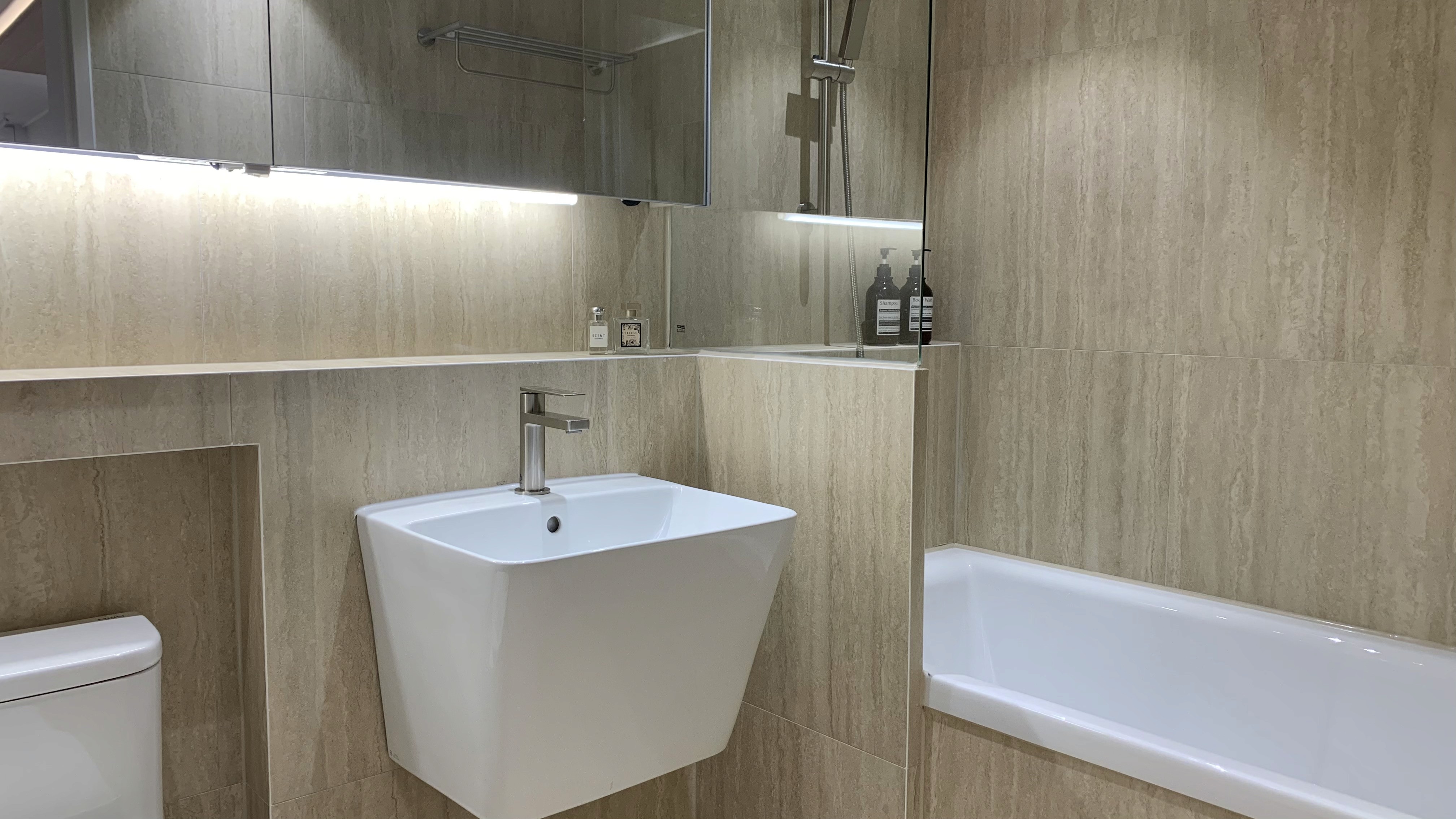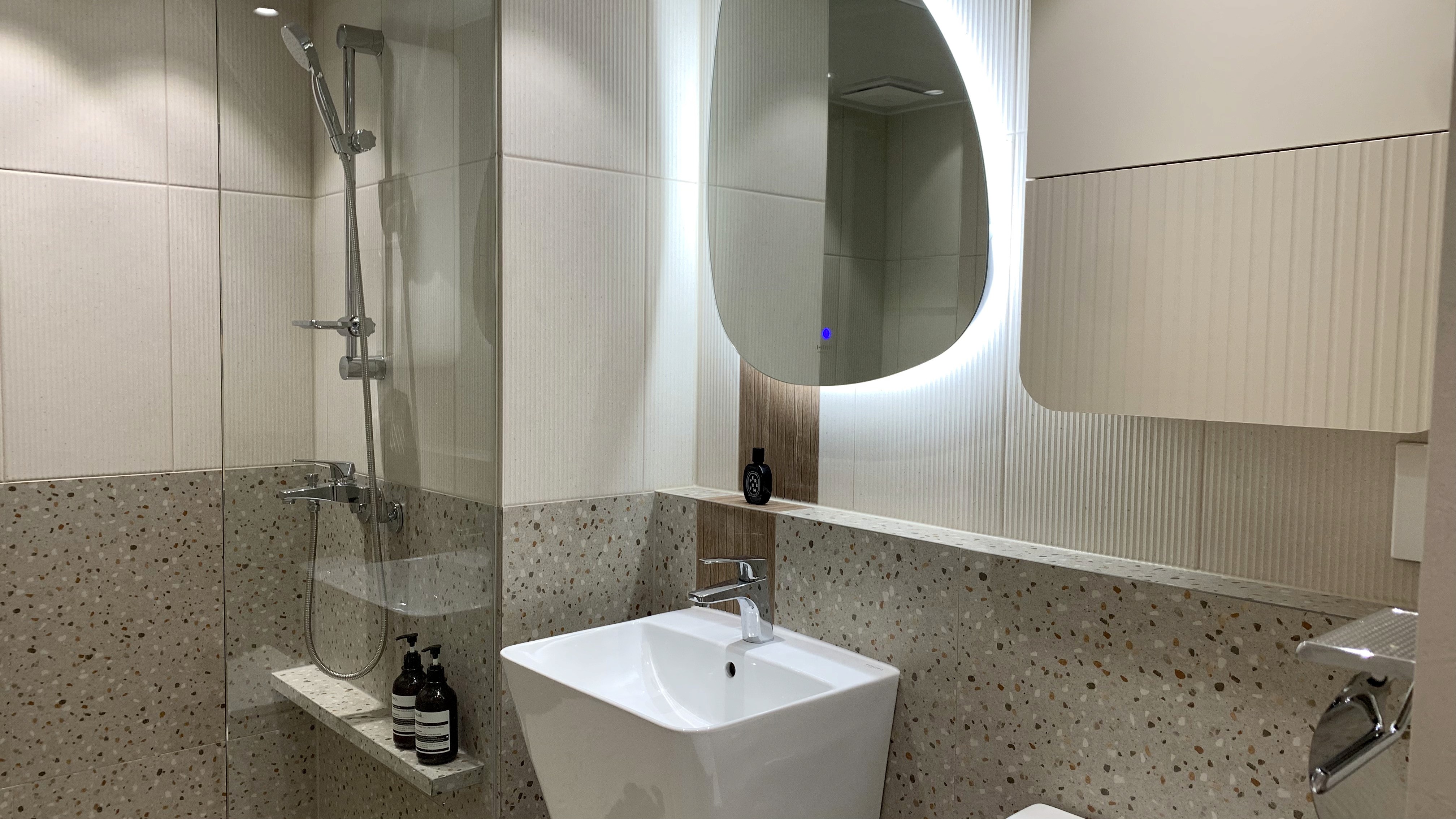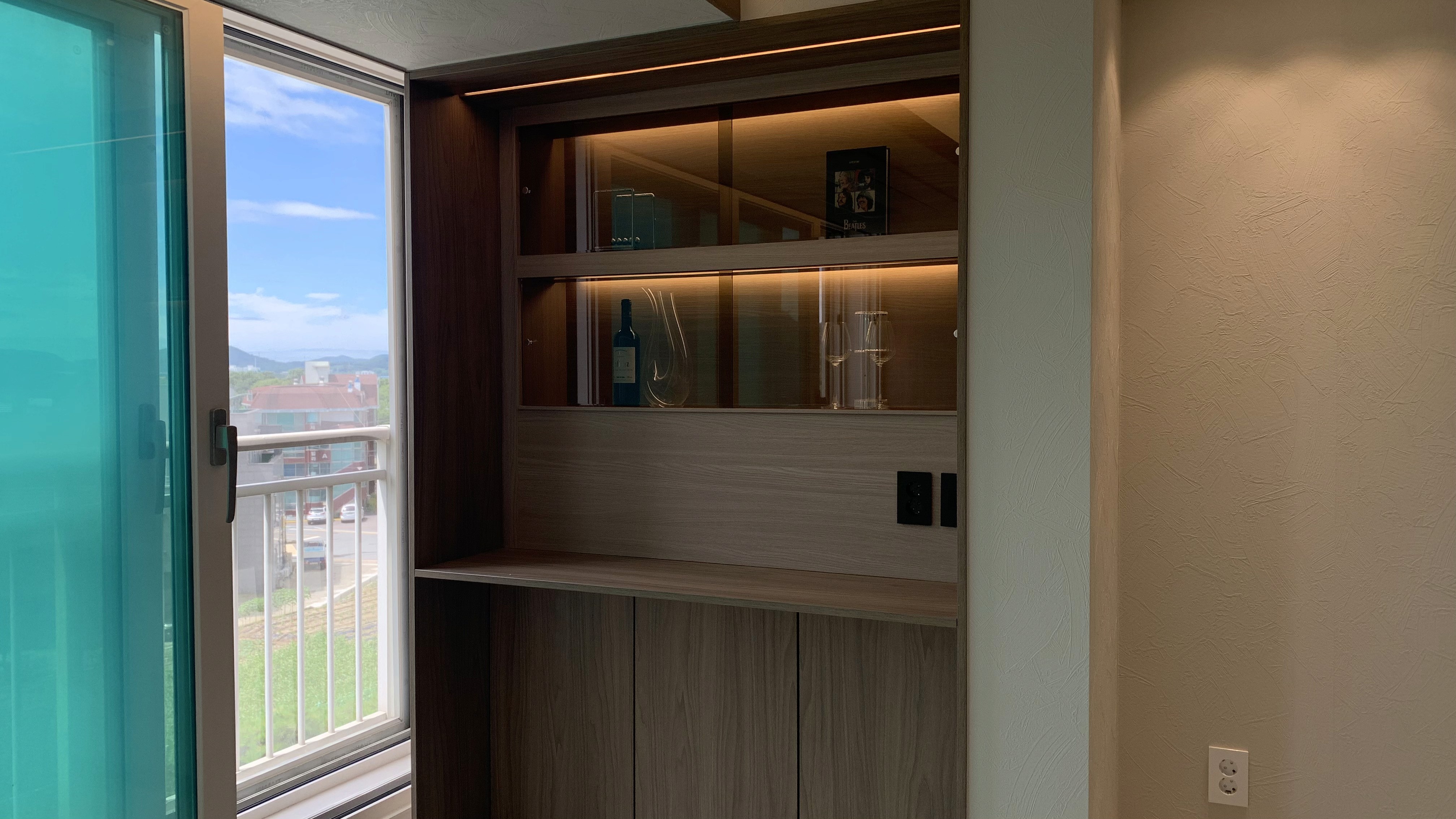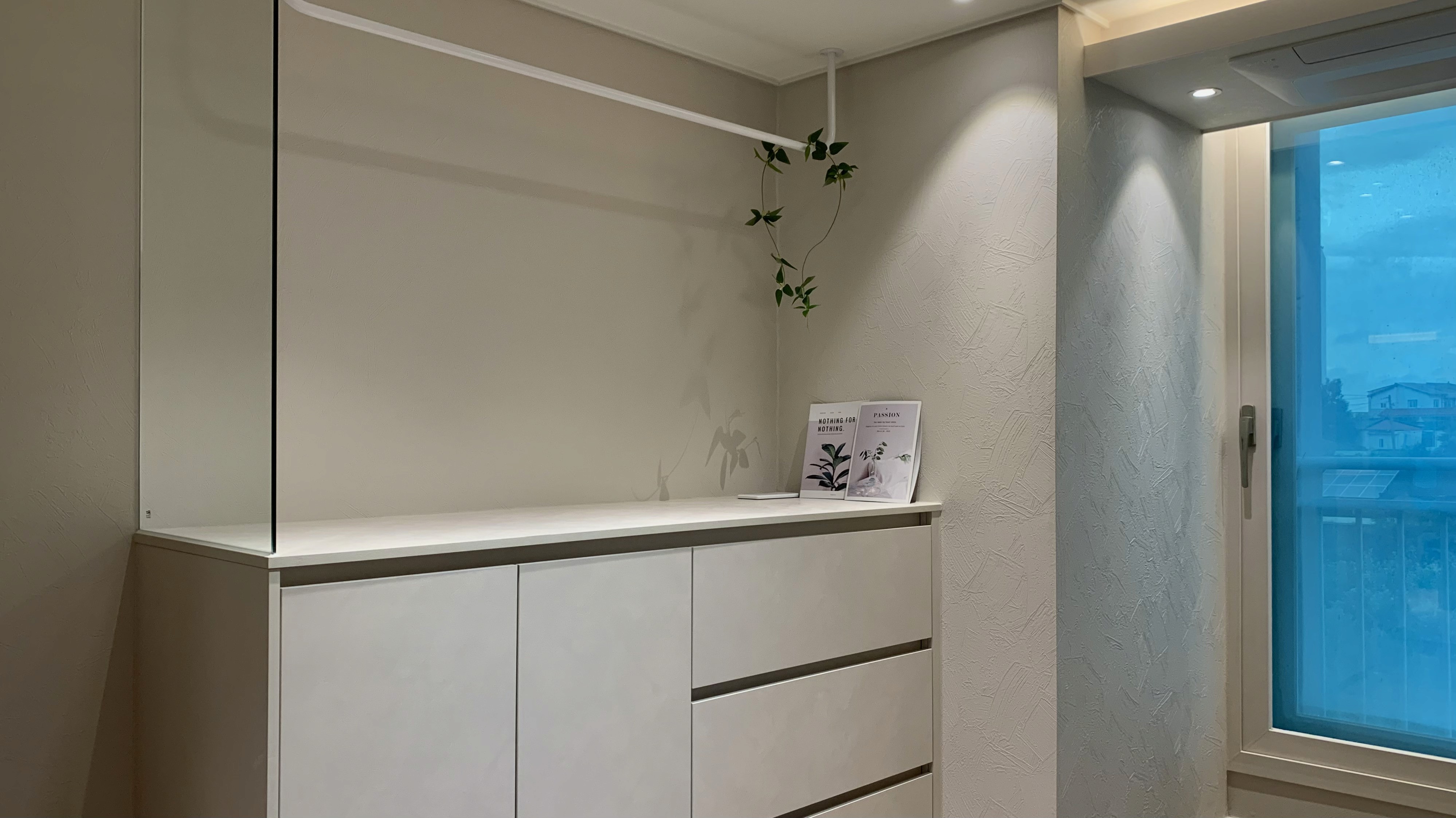 다크 우드의 깊이감과 스톤의 질감이 완벽한 균형을 이루는 모던 프리미엄 공간